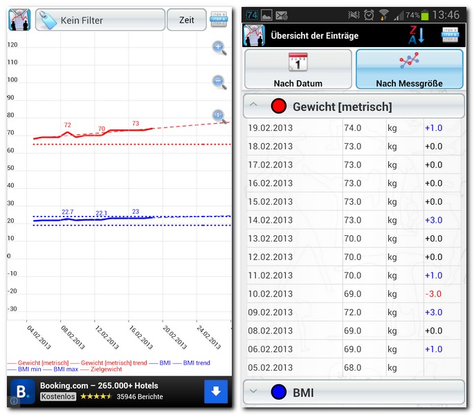Mit dieser Anwendung verfolgst du dein Gewicht bequem auf dem Smartphone und kannst die gesammelten Daten mittels CSV-Exportfunktion auch auf deinen Computer übertragen. Jeder der sein Körpergewicht für einen längeren Zeitraum überwachen möchte, ist mit dieser App jedenfalls gut beraten.