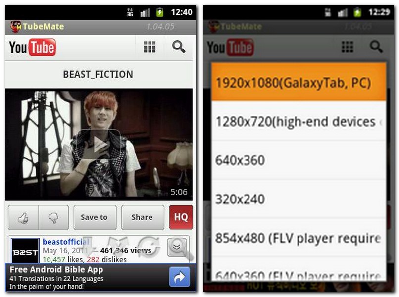 Youtube-Videos mit einem Klick downloaden! Mit TubeMate ist jetzt die erste App im Market aufgetaucht mit der Youtube-Videos bequem auf dem Handy gespeichert werden können. (kostenlos)