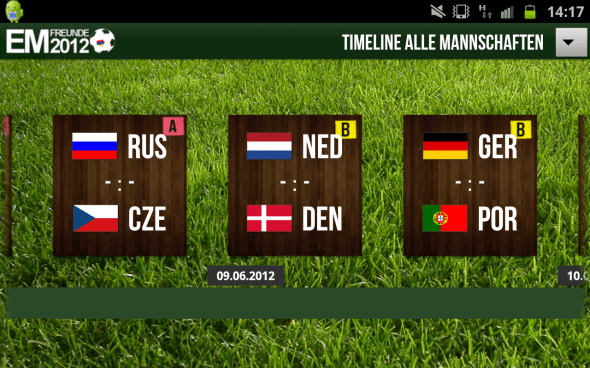 In der Timeline können die noch nicht ausgetragenen Spiele aller Manschaften verfolgt werden.