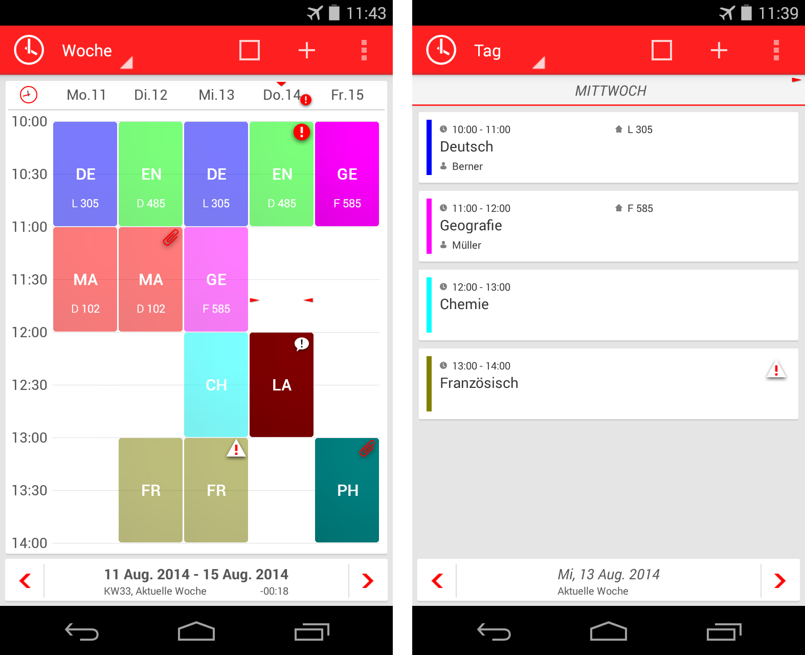 Mit Hilfe von drei unterschiedlichen Widgets kannst du dir direkt auf dem Startbildschirm unter anderem die Wochen- oder die Tagesübersicht oder aber einen Countdown bis zur nächsten Unterrichtsstunde anzeigen lassen.