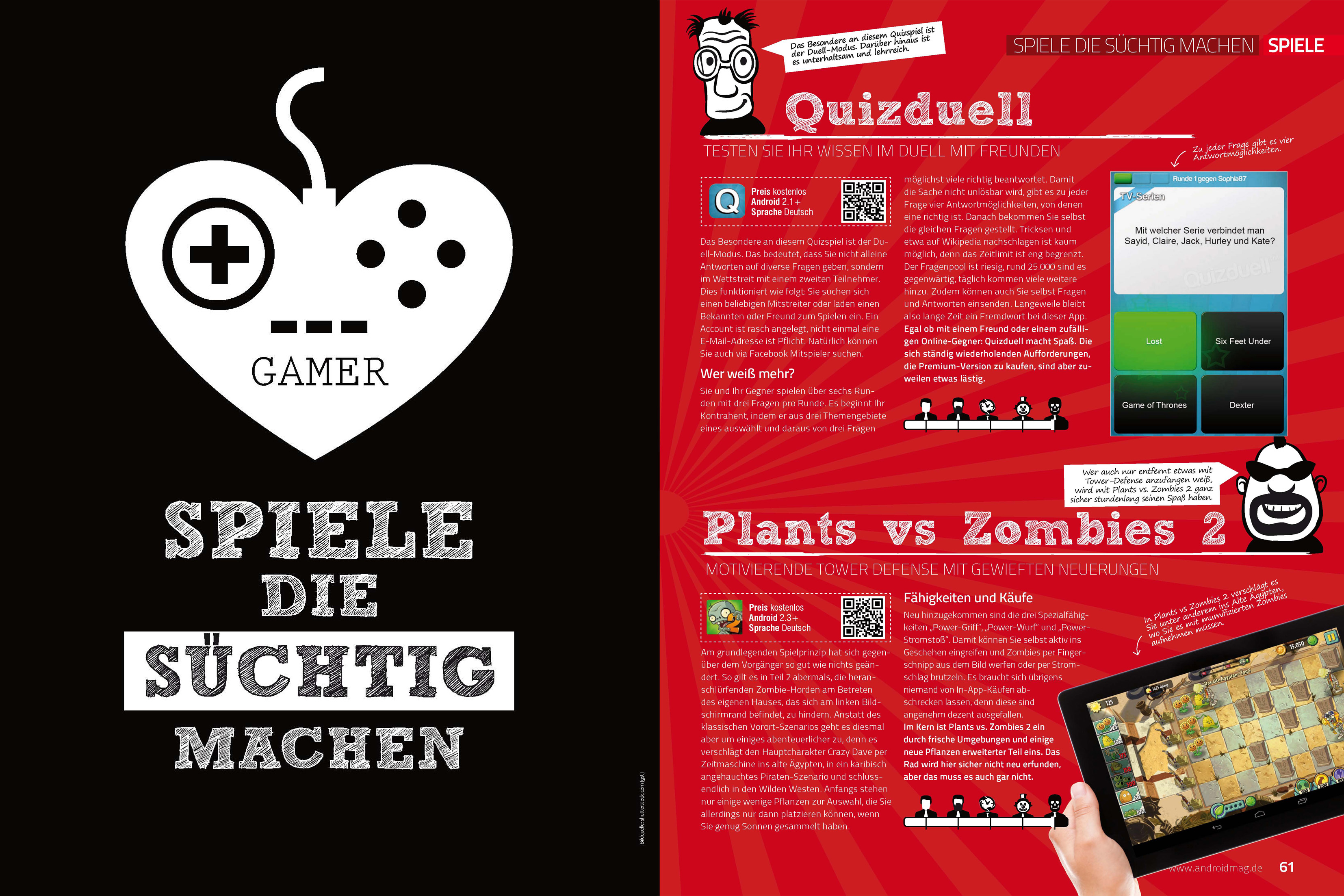 Als Spezialthemen haben wir uns zudem die unserer Meinung nach innovativsten Apps angesehen und Apps für das mobile Büro zusammengetragen und getestet. Bei den Spiele-Tests findest du Artikel zu neuen Games, zu süchtigmachenden Spielen sowie längere Tests zu Top-Games wie Clash of Clans, Ridiculous Fishing und Dead Trigger 2.