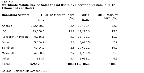Der Siegeszug von Android ist nicht mehr aufzuhalten (Bild: Gartner)