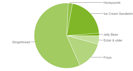 Eine weitere interessante Statistik besagt, dass mittlerweile ca. 22% aller Android-Geräte mit Ice Cream Sandwich ausgestattet sind. Eine beachtliche Zahl, wie wir finden, denn vor ca. einem Monat sind nur 16% mit der Version 4.0 versorgt gewesen. Nach wie vor hält Gingerbread den größten Anteil mit 57 Prozent. Grund für den schnellen Zuwachs ist neben der Update-Welle, welche nun in Bewegung ist, auch die Tatsache, dass die meisten Geräte, die jetzt ausgeliefert werden, schon mit Android 4.0 oder 4.1 ausgestattet sind.