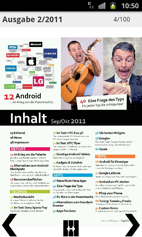 In jeder Ausgabe  findet der interessierte Leser neben Tests zu den besten Android-Smartphones und -Tablets zahlreiche App-Reviews sowie nützliche Tipps für Einsteiger und Profis, mit denen er das Maximum aus einem Android-Gerät herausholt. Und das Tolle an der App: es gibt eine kostenlose Vorschau auf die Themen und wer sich ein aktuelles Magazin kaufen möchte, spart 50% gegenüber dem Preis am Kiosk.