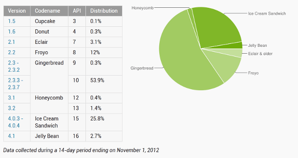 Android 4.0 ist immer noch nur auf rund 25% aller Geräte installiert.