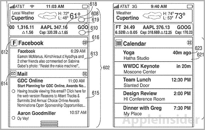Am Patentantrag sieht man das Notification-Center, welches fast genauso aussieht wie das von Android. (Foto: Appleinsider)
