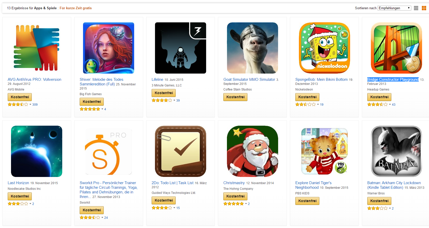 Bis 27. Dezember 2015 erhalten wir bei Amazon ausgewählte Apps gratis, die Sie sonst kostenpflichtig sind.