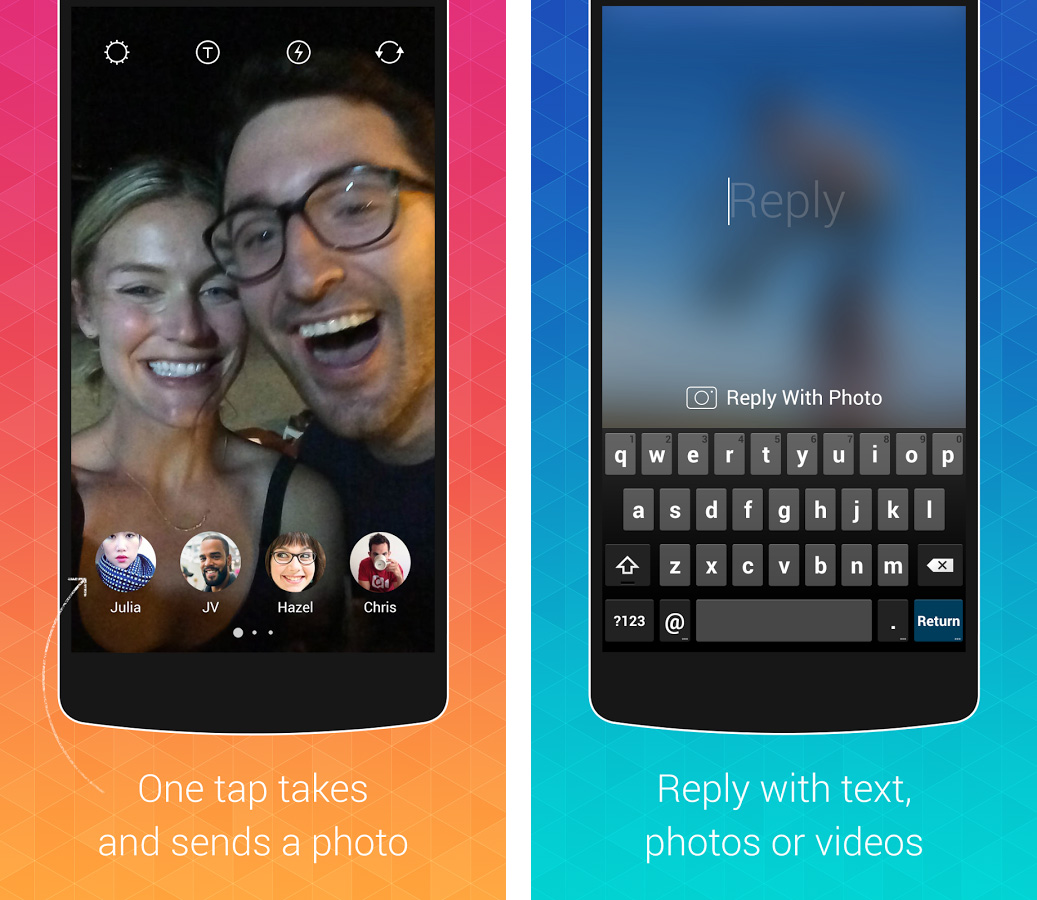 Mit Bolt kannst du Bilder oder Videos an deine Kontakte senden, welche wiederum mit einem Foto, Video oder Text antworten können. Dabei wird die Kontaktliste ganz einfach aus den Telefonnummern des Nutzers erstellt. Anders als bei Instagram Direct  können die Nachrichten bei Bolt nur an einen Kontakt gesendet werden. Außerdem ist die Kontaktliste bisher nur auf maximal 20 Kontakte beschränkt.