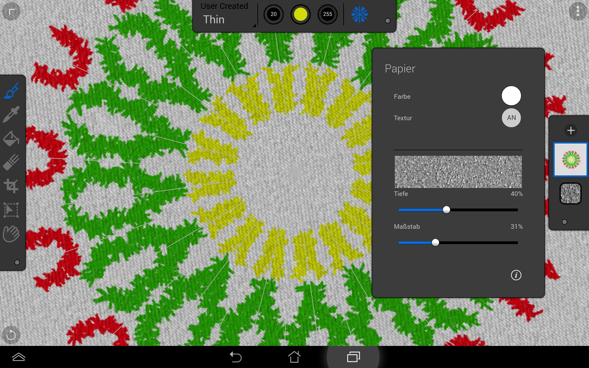 Dass du dich via Pinch-Gesten beinahe beliebig ein- und auszoomen kannst, versteht sich von selbst. Bemerkenswert ist aber die Ebenentechnik. Bis zu 20 Layer lassen sich anlegen. Damit ist nun auch das PSD-Dateiformat zum Speichern von Bildern begründet.