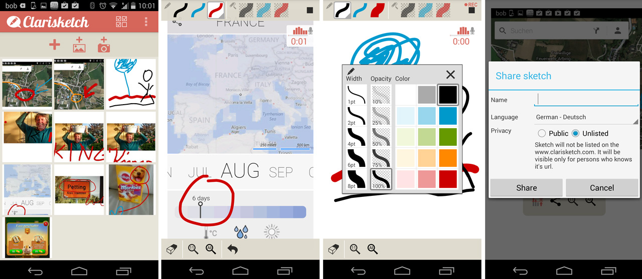 Auf diese Weise kannst du deinen Lieben schnell mal Skizzen zusenden, die du so kommentierst, dass keine weiteren Fragen mehr offen sind. Die Anwendungsgebiete sind vielfältig und weil die Bedienung der App so einfach ist (Foto aufnehmen oder laden, zeichnen und dazu sprechen), ist die App höchst empfehlenswert.
