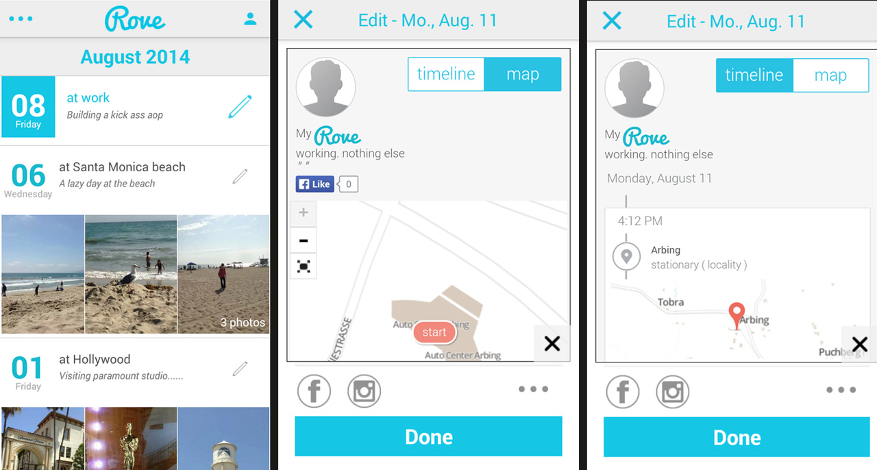 Du warst heute mit deiner Freundin im Kino. Und danach warst du fein essen und hast ihr einen Heiratsantrag gemacht. In spätestens zehn Jahren wirst du dich fragen, wann und wo das war. Schlimmstenfalls auch wieso. Auf die ersten beiden Fragen hat Rove dann eine passende Antwort parat. Die App loggt alles mit, wo du am erwähnten Tag gefrühstückt hast, was du am Vormittag wo gemacht hast. Wo du zu Mittag gegessen hast und wie weit und wann du von Zuhause ins Kino gelaufen oder gefahren bist. Auch wann du im Restaurant eingetroffen bist, wo alles begonnen hat. Und selbst die Beweisfotos von damals – die hast du ja sicher gemacht – sind noch gespeichert – und zwar auf den Servern von ZeTrip, dem Hersteller der App.