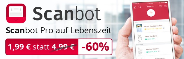Mal eben schnell ein Dokument einscannen und per PDF Abspeichern war noch nie so einfach wie in der heutigen Zeit. Eine besondere Hilfe bei diesem Unterfangen ist die App Scanbot Pro, welche es heute stark reduziert gibt.