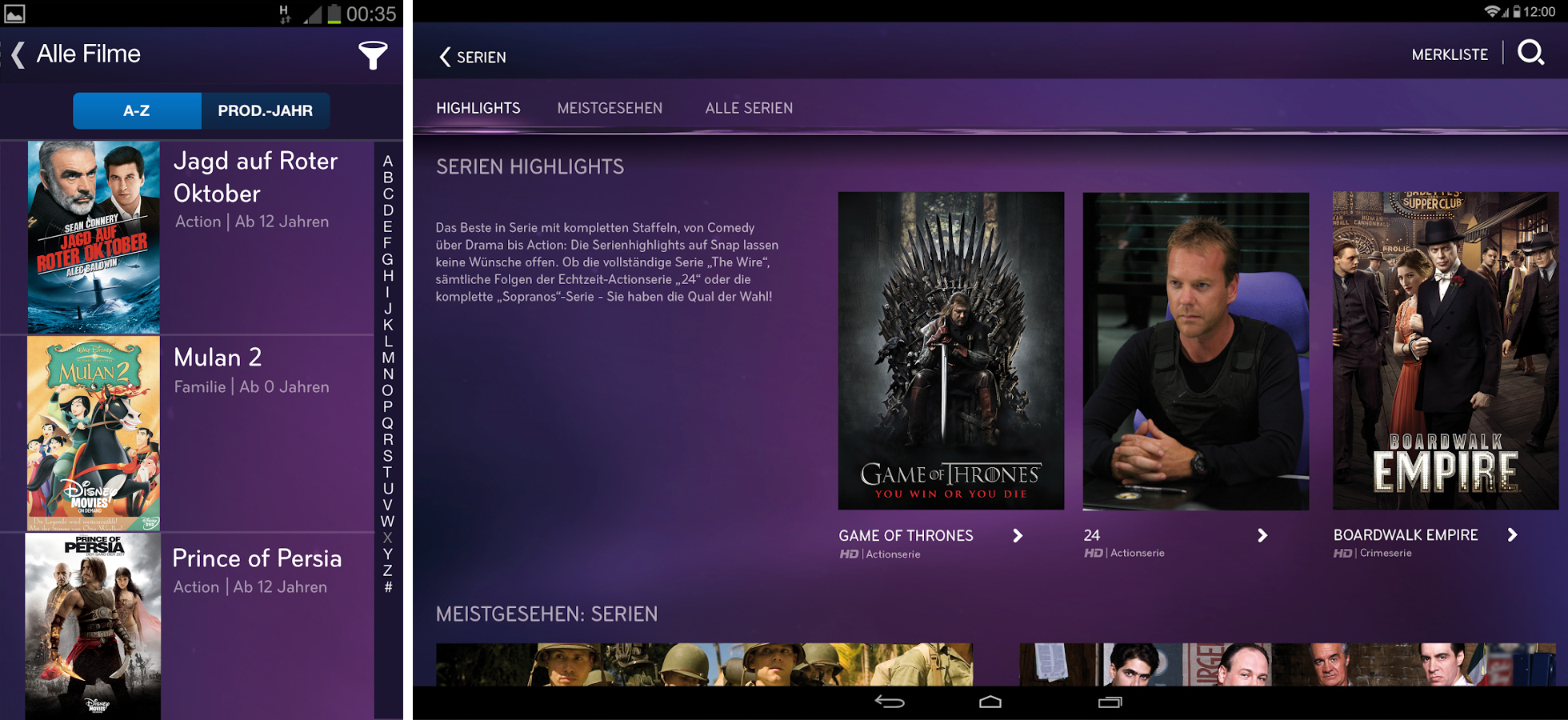 Bei Snap by Sky werden eine Vielzahl von Filmen und Serien angeboten, welche jederzeit abgespielt werden können. Live-TV und Sport wird aber weiterhin ein exklusives Feature von SkyGo bleiben.