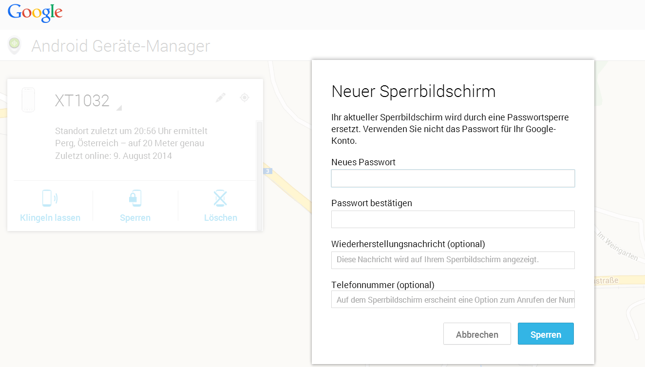 Um das Handy zu sperren, musst du übrigens ein neues Passwort festlegen, das nicht mit dem Passwort des Google Accounts identisch sein darf.