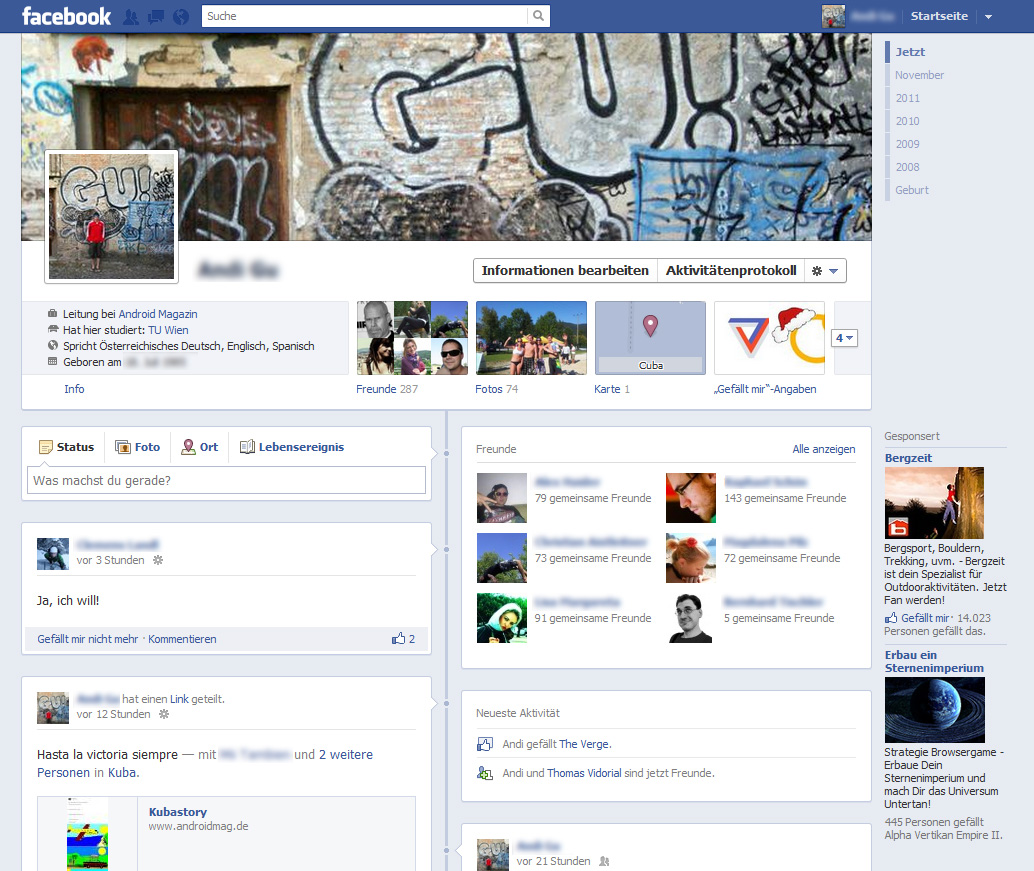 Facebook versucht momentan die neue Timeline an alle registrierten Nutzer zu verteilen. Mit dem heutigem Update der Facebook-App gibt es diese auch auf dem Smartphone.