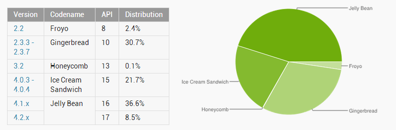 Hingegen hat Jelly Bean 4.2.x noch immer nur 8,5 % Marktanteil.