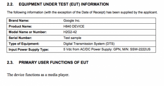 So, wie es derzeit die Gerüchteküche voraussagt, sollen am 10. Juni eine weiße Farbvariante des Nexus 4, sowie ein neues Nexus 7 vorgestellt werden. Dieses Datum (fall es sich als wahr herausstellt) könnte sehr interessant werden. Wenn Unternehmen die verpflichtende Prüfung bei der FCC beantragen, ist das zu prüfende Gerät bereits weit in der Entwicklungsphase, da die Ergebnisse, sowie der Antrag öffentlich zugänglich gemacht werden. Somit würde es zumindest zeitlich perfekt für den 10. Juni passen, dass Google bei einer möglichen Gerätepräsentation auch das Streaming-Gerät H840 vorstellen könnte.