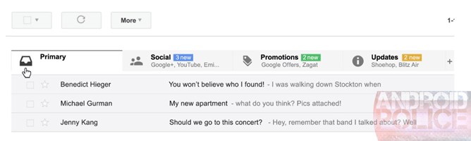 Die neuen SmartLabels für die Desktop-Version von GMail. Bildquelle: mobilegeeks.de/androidpolice.com