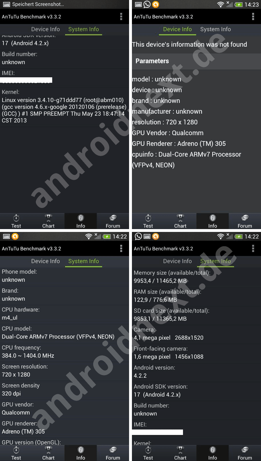 Das HTC One mini soll Gerüchten zufolge bereits nächste Woche vorgestellt werden und mit Android 4.2.2 sowie Sense 5 auf den Markt kommen. In den geleakten Screenshots von CPU-Z wird zwar der Snapdragon S400 als S4 bezeichnet, aber aufgrund der Angaben zur GPU, der Adreno 305, kann es sich nur um einen Snapdragon S400-Chip handeln. Selbes Phänomen ist auch schon beim Galaxy S4 mini aufgetreten, in dem die selbe CPU verbaut ist.