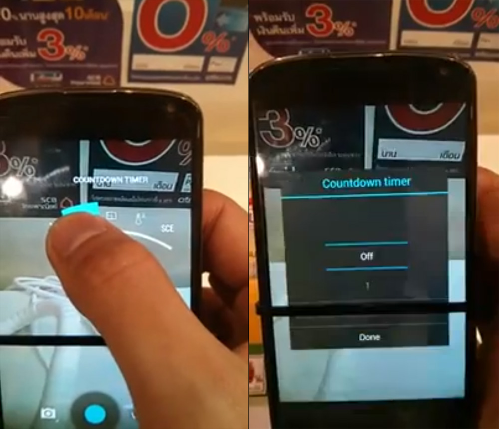 Die Bedienung soll vollständig über das Pie-Menü funktionieren, das erscheint, wenn man mit dem Finger das Display berührt. In diesem Menü sollen sich die üblichen Einstellungen zum Blitz, zu Szenen und Co. machen lassen. Das Video wurde angeblich auf der Thailand Mobile Expo 2013 gedreht.