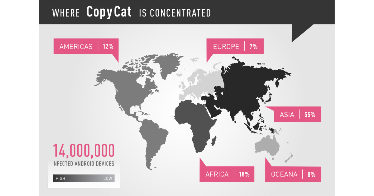 Die neue Malware „CopyCat“ hat weltweit 14 Millionen Android-Geräte befallen – darunter knapp 1 Million Smartphones und Tablets in Europa.