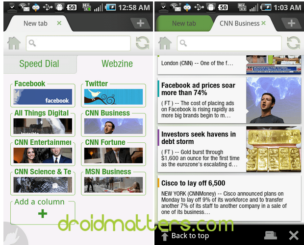 Der beliebte mobile Webbrowser für Android ist in der Version 6.0 erschienen. Neben vieler kleiner Verbesserungen, Bugfixes und einem neuen Logo sticht vor allem das neue “Webzine” genannte Feature heraus.