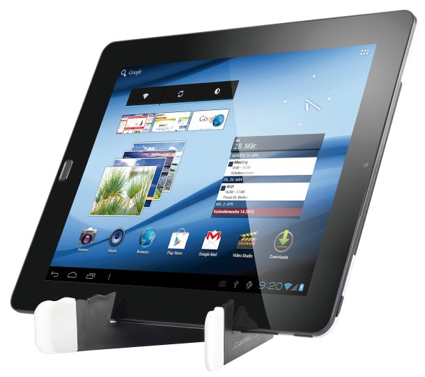 Auffalten, einstecken – und schon steht das Tablet! (Quelle: Pearl)