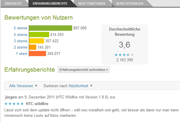 Jetzt ist es den Nutzern des Marktplatzes möglich nach bestimmten Kriterien zu filtern, so könnt ihr beispielsweise nur Kommentare von Menschen lesen, die nur einen Stern vergeben haben. Außerdem kann festgelegt werden, ob nur Bewertungen der neuesten Version oder von allen angezeigt werden sollen. Da Apps auf verschiedenen Geräten unterschiedlich laufen ist es nun auch möglich nach Geräten zu filtern. So könnt ihr zum Beispiel festlegen, dass nur die Bewertungen angezeigt werden, die nur von Käufern mit dem gleichen Smartphone wie ihr es habt geschrieben wurden. Das Filtern nach den Geräten konnten wir jedoch noch nicht testen, da die Option offenbar im deutschsprachigen Raum noch nicht verfügbar ist.