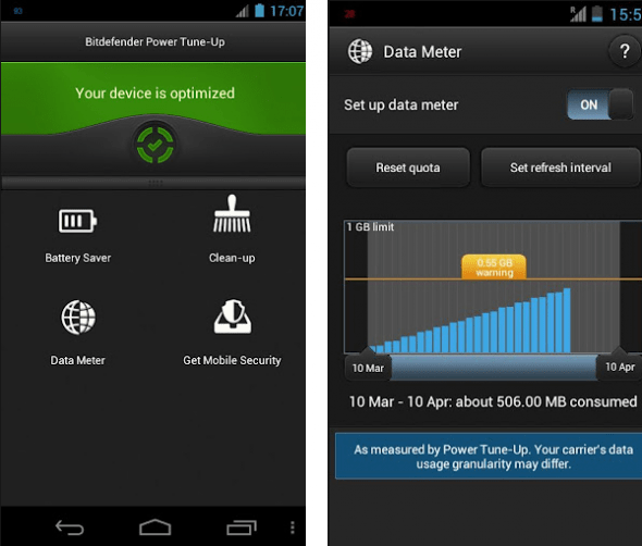 Die Benutzeroberfläche von Bitdefender Power Tune-Up.
