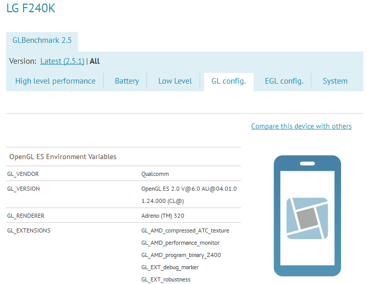 Ein Smartphone mit einem 5 Zoll Display, das über eine Auflösung von 1920 x 1080 Pixeln verfügt, haben wir vor kurzem von HTC gesehen. Auch Samsung soll allem Anschein nach an einem 1080p-Display werkeln und auch LG scheint sich an die Full HD Bildschirme herranzuwagen. Zumindest, wenn man dem GL-Benchmark-Ergebnis Glauben schenken darf. Neben dem 1080p-Display ist das Smartphone mit einem 1,5 GHz starken Qualcomm S4 Pro Prozessor ausgestattet. Außer der Tatsache, dass das Gerät die Android-Version 4.1.2 nutzte, sind keine Informationen zum mysteriösen LG F240K, so die firmeninterne Bezeichnung, bekannt.