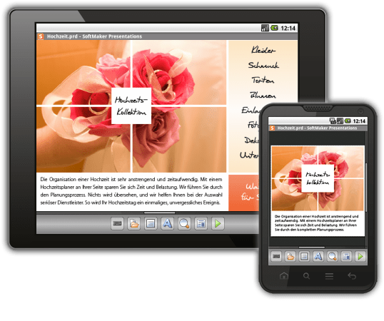 „Office am Smartphone“: Viele sagen, das geht gar nicht. Die Hersteller von Office-Suiten möchten das Gegenteil beweisen. Nun reiht sich in die Liste der Beweispflichtigen auch SoftMaker ein.Die mobile Ausführung von SoftMaker Office steht ab sofort auf http://softmaker.de/ofa.htm zum Download bereit. Eine Registrierung per E-Mail wird allerdings vorausgesetzt. Wen der Preis von 27,99 Euro abschreckt, der sollte vorab mal die Testversionen downloaden und probieren. Noch müssen die einzelnen apk-Dateien von der Herstellerseite heruntergeladen werden,  aber demnächst werden die Apps auch im Google-Play-Store verfügbar sein.