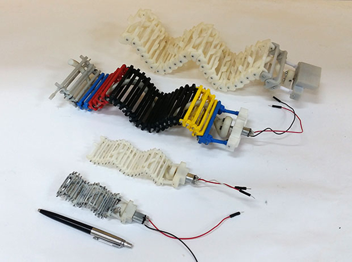 Der SAW-Roboter (Single Actuator Wave), so heißt das kleine wurmartige Ding, bewegt sich mithilfe einer Art Wirbelsäule, die aus einem 3D-Drucker stammt, durch wellenartige Bewegungen vorwärts.
