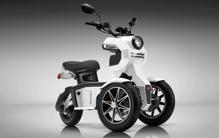 Denn erstens wird dieses Motorrad elektrisch angetrieben und zweitens verhindert es Stürze durch die doppelten Vorderräder.