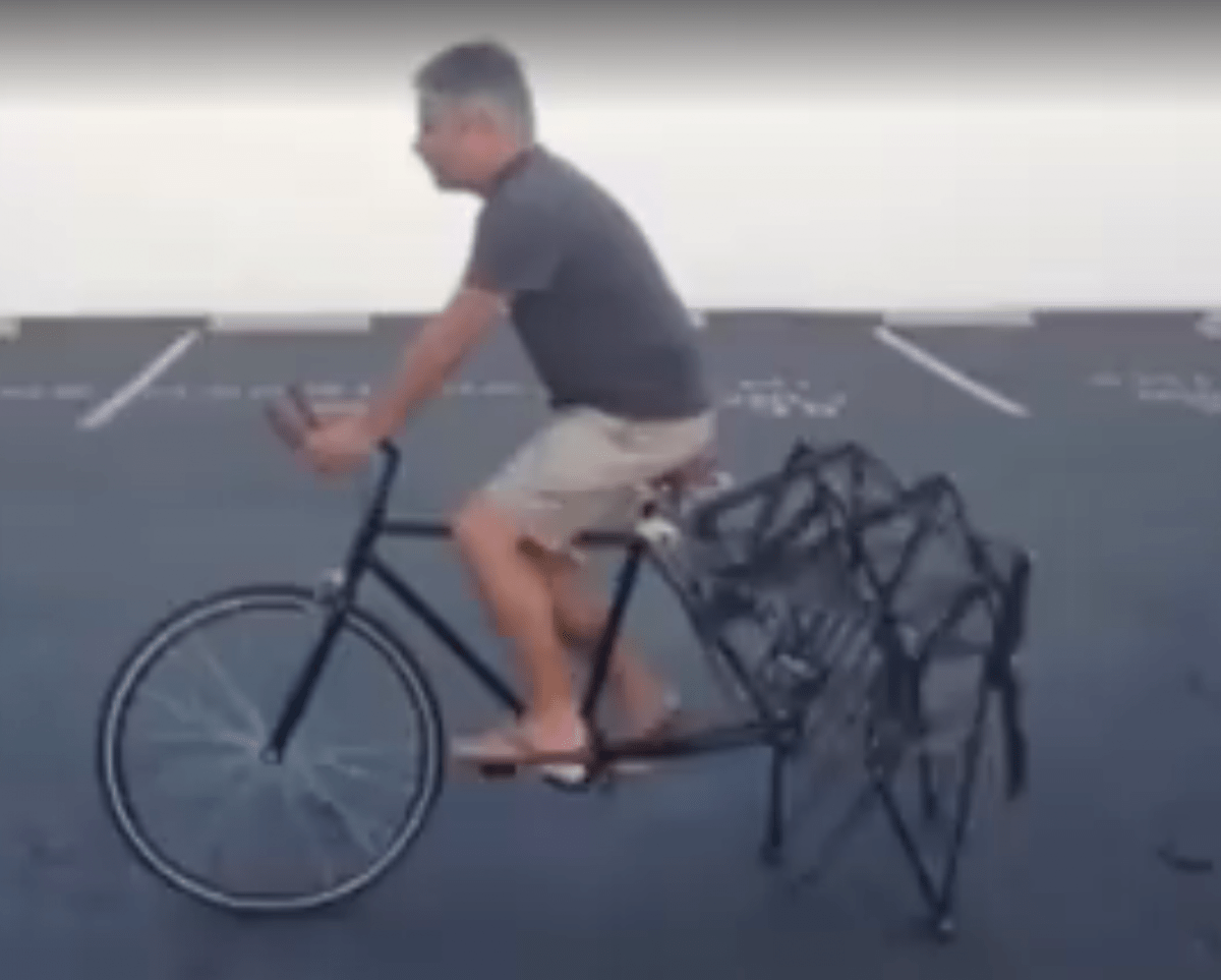 Fahrräder haben im Normalfall zwei Räder, eines vorne und eines hinten. Doch das Fahrrad in diesem Video hat hinter Beine …