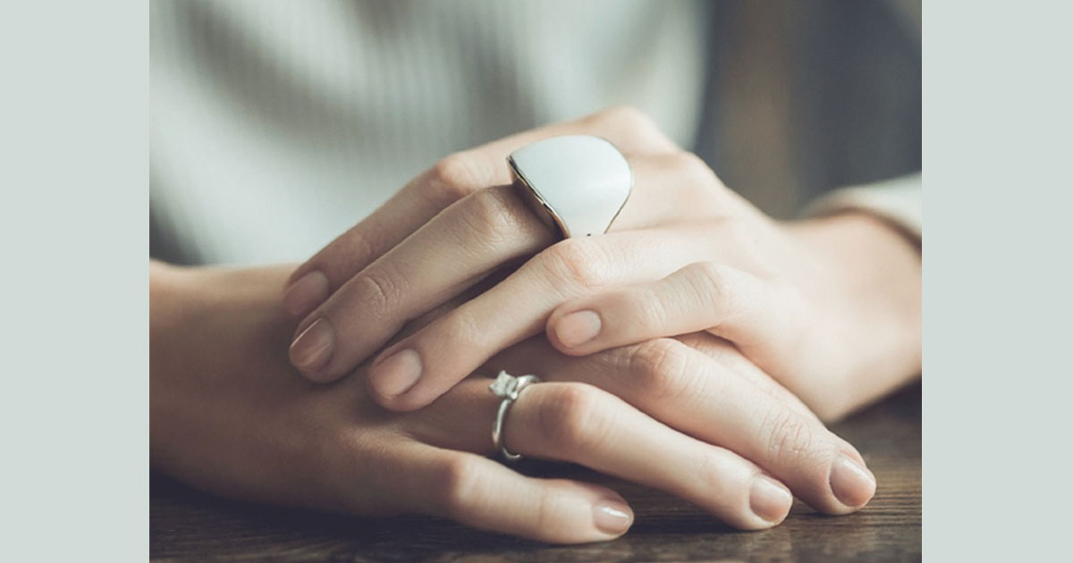 In der normalen Tragehaltung sieht man es dem Ring nicht an, dass er smart ist. Aber er enthält einen verdeckten Knopf, der auf Wunsch eine Warnmeldung mit deinem Standort an deine Rettungsdienste, Freunde oder Familie sendet.