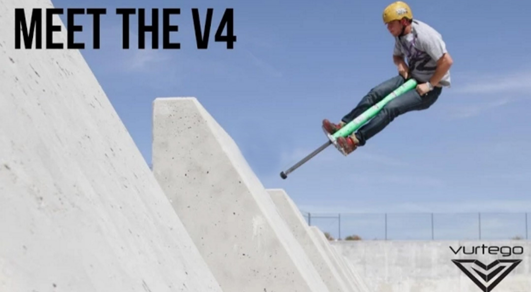Ein Pogo Stick ist ein Sprungstock, der dich mittels einer Feder im Stock in die Luft katapultiert. Mit dem V4 Pro von Vurtego springst du nun sogar bis zu 3 Meter hoch. Und kannst Kunststücke aufführen (Tricks performen), wie dieses Video zeigt.