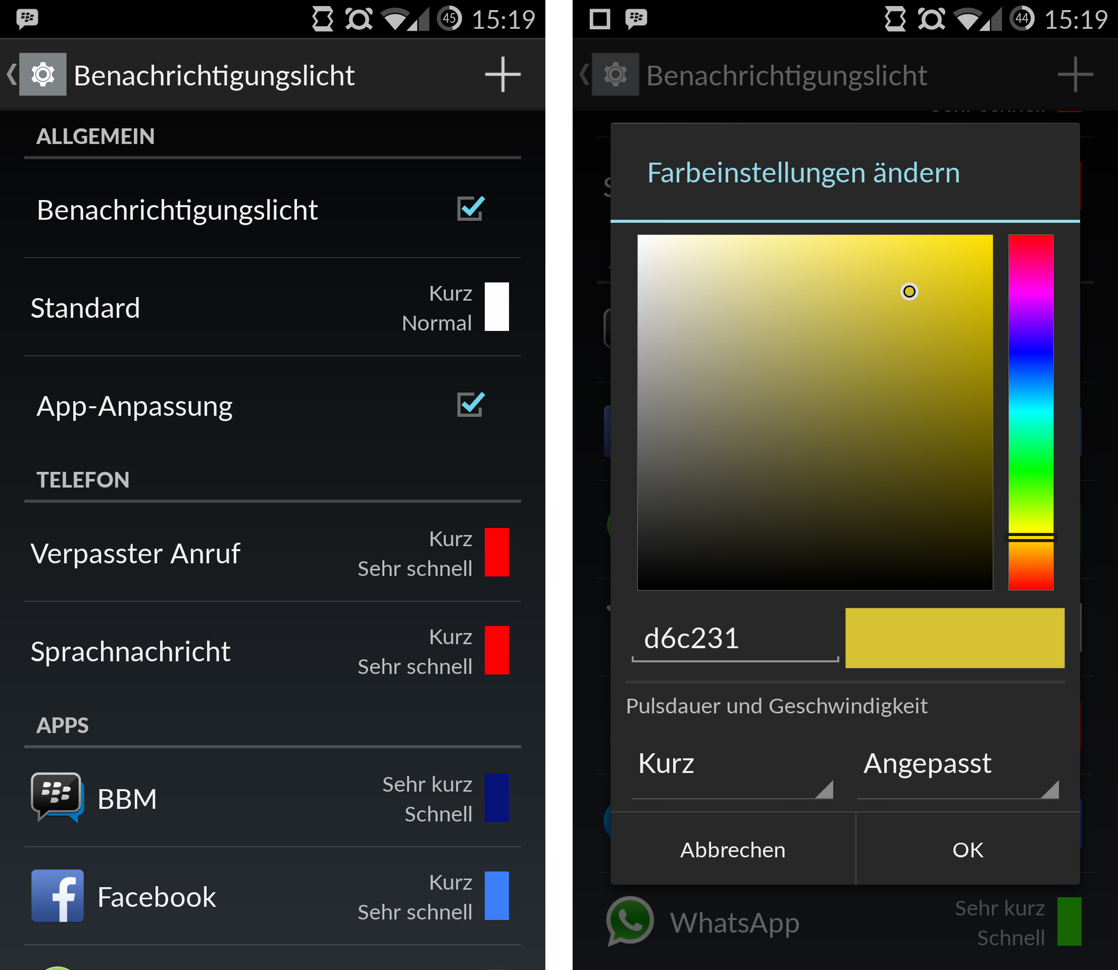 Ein besonders bemerkenswertes Feature ist die Anpassbarkeit der LED. So kannst du zum Beispiel festlegen, welche Farbe die LED anzeigen soll, sobald du eine WhatsApp-Nachricht bekommst. Für eine Facebook-Benachrichtigung kannst du wieder eine andere Farbe festlegen. Doch nicht nur die Farbe, sondern auch die Häufigkeit und die Dauer des Blinkens kannst du nach eigenem Ermessen festlegen.