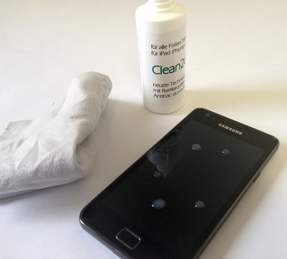 … Und kommen natürlich wieder, keine Frage. Aber nicht mehr ganz so massiv und diese erneut zu beseitigen ist in den ersten Tagen nach der Behandlung mit clean2go kein wirkliches Problem. Man wischt einfach mit dem Tuch kurz über das Display, schon sind sie weg. Ganz anders ohne Behandlung. Da muss man schon ganz schön Kraft aufwenden. Der Trick besteht nicht in einer chemischen Behandlung, sondern in einer physikalischen, wobei eine dünne Barriereschicht aufgetragen wird, die Schmutz besser abweist.
