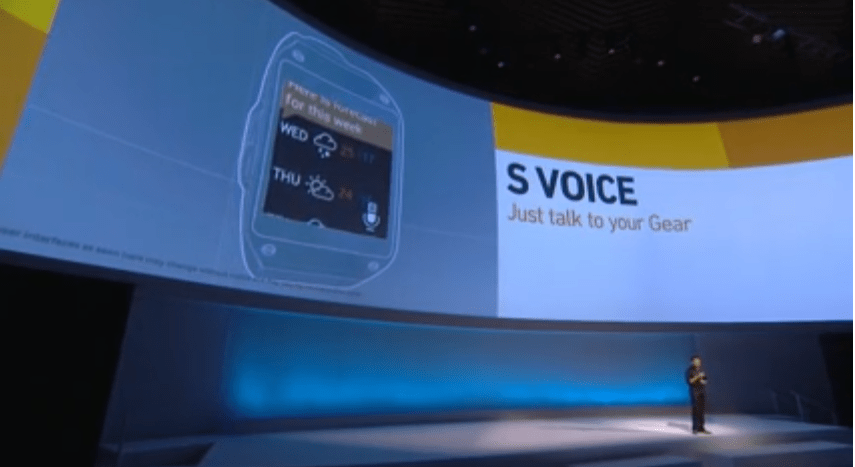 Als Companion-Gerät zum Note 3 wurde die Galaxy Gear präsentiert, die erste Smartwatch von Samsung. Die Uhr kommt in sechs Farben. Gesteuert wird Gear größtenteils über Sprache, Nutzer können die Uhr fragen bzw. ihr Befehle erteilen. Wird eine Mail auf der Uhr gelesen und gleichzeitig das Note 3 aufgeweckt, wird auf dem Smartphone automatisch die Mail angezeigt. Mit dem “Memographer” – einer Kamera – sollen Nutzer keinen Schnappschuss mehr verpassen. Natürlich kann mit der Uhr auch telefoniert werden, dank eines Mikrofons und eines Lautsprechers im Band sogar ähnlich intuitiv wie bei einem Smartphone. Auch Musik kann über die Uhr gesteuert werden, die Gear zeigt zudem sämtliche Benachrichtigungen des Smartphones an.
