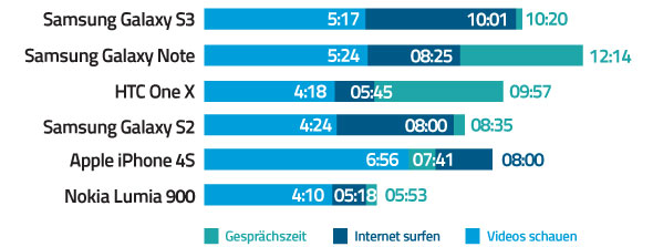 Akku-Benchmark-Vergleich des S3 mit anderen aktuellen Top-Smartphones