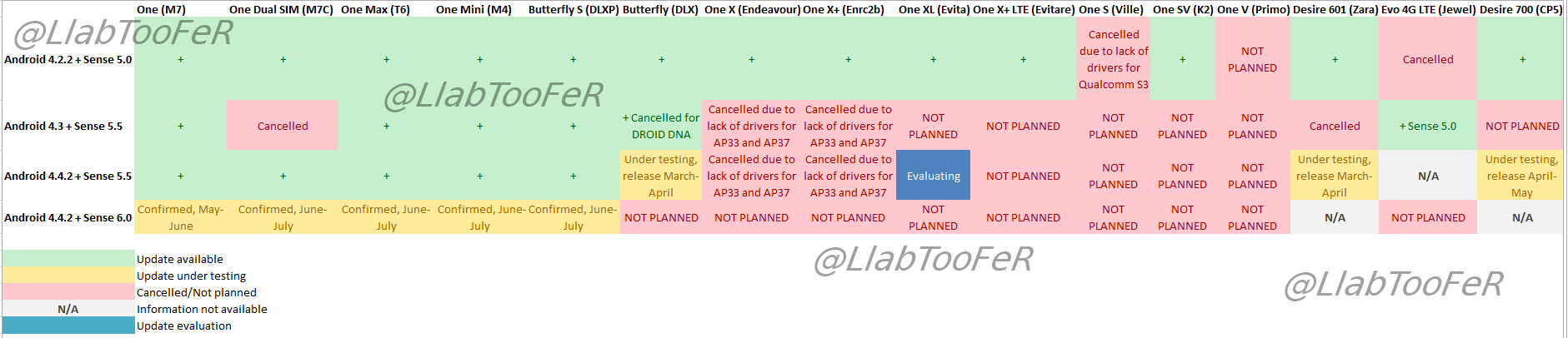 Auf dem Fahrplan ist ersichtlich, dass die gesamten One-Geräte, sprich das One (M7), One Dual Sim, One Max und One Mini sowie das Butterfly S Android 4.4.2 inklusive Sense 6.0 erhalten werden. Alle anderen bzw. älteren Geräte werden das Update vermutlich nicht mehr bekommen. Den Anfang wird natürlich das derzeitige Flaggschiff machen und zwischen Mai und Juni die neue Version bekommen – vermutlich Entwickler und freie Geräte.