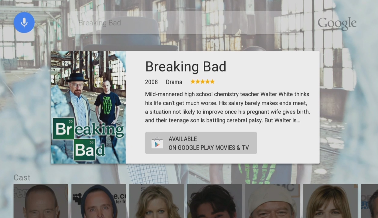 Wie auch bei den anderen Ankündigungen ist auch bei Android TV die Sprachsteuerung mit an Bord. So musst du zum Beispiel nicht einmal die Fernbedienung oder dein Smartphone in die Hand nehmen um die nächste Serie zu starten. Dabei ist es natürlich nicht nur möglich zum Beispiel nach „Breaking Bad“ zu suchen, sondern auch Fragen wie „Wer hat Katniss in Die Tribute von Panem gespielt“ werden von dem Service beantwortet.