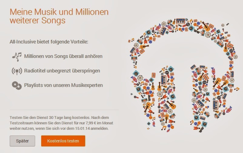 Bisher bot der als Google Play Music bezeichnete Online-Musikshop aus dem Hause Google in Deutschland nur einzelne Tracks und Alben an. Der in anderen Ländern wie beispielsweise Österreich seit einiger Zeit verfügbare All-you-can-Eat-Tarif ist laut MobileGeeks nun am Weg in die BRD: