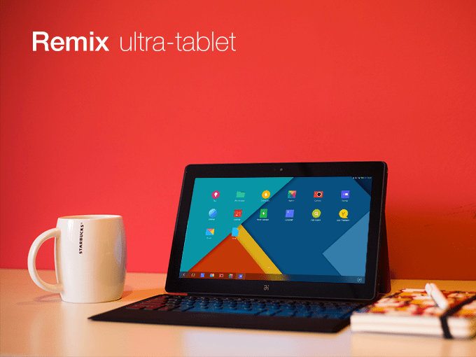 Kommen wir aber jetzt einmal zum Tablet. Die Besonderheit liegt darin, dass jenes Gerät dem Microsoft Surface-Tablet sehr ähnelt. Mit einer Stütze an der Rückseite und einer Cover-Tastatur ist das Remix Ultra-Tablet für die Verwendung als Notebook-Ersatz geschaffen worden. Damit man auch ähnlich produktiv auf dem Gerät arbeiten kann wie auf einem PC wurde die Oberfläche ordentlich aufgebohrt. Während im Inneren des Betriebssystems noch immer Android schlummert, so hat das äußere Erscheinungsbild nur mehr wenig mit dem Google-System gemeinsam. Vor allem die integrierte Taskleiste soll das Arbeiten auf dem Remix-Tablet vereinfachen.