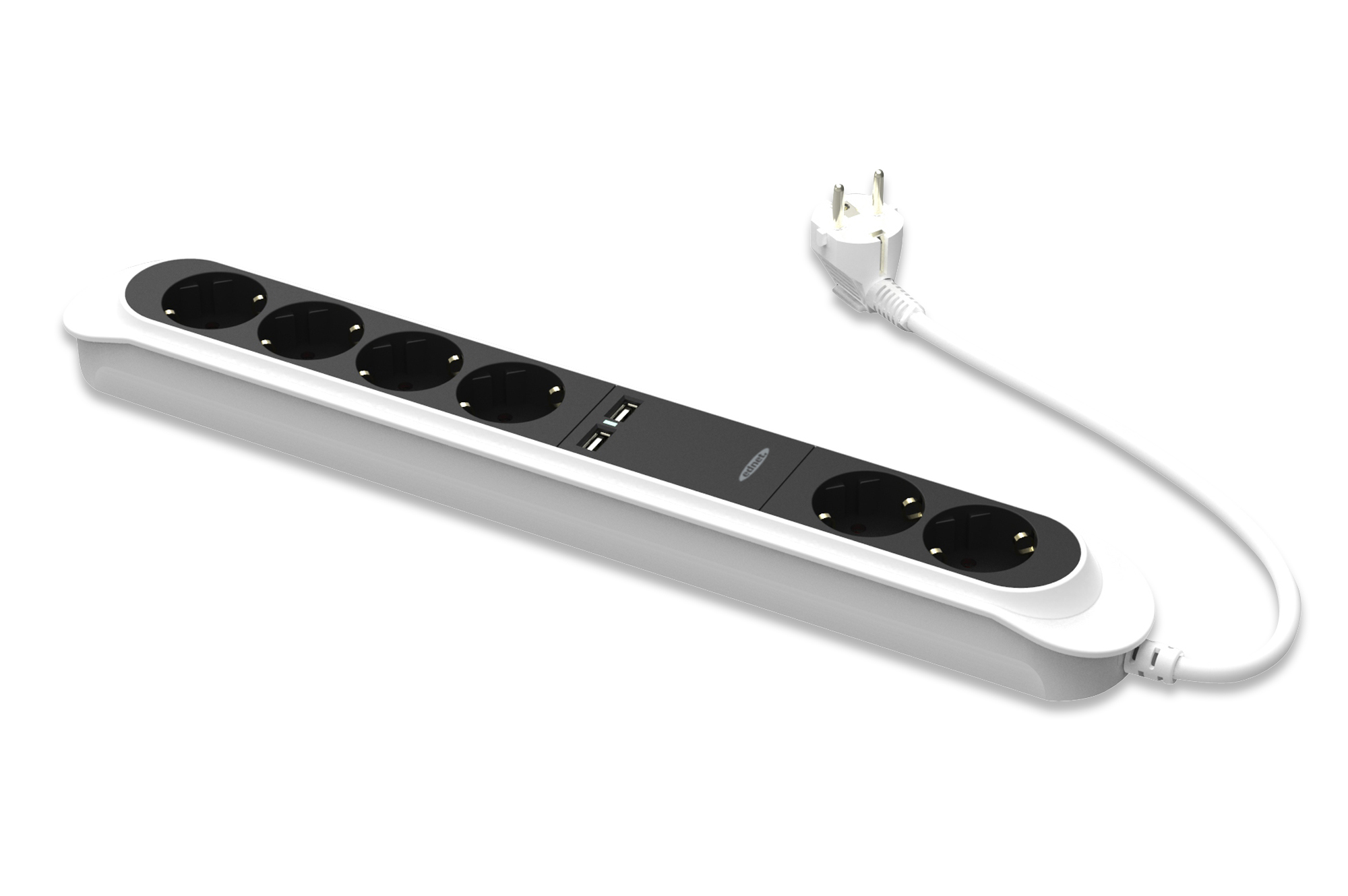 Und wenn du mehr Steckdosen benötigst, greifst du zur Steckdosenleiste von ednet. Die verfügt ebenfalls über zusätzliche USB-Anschlüsse.