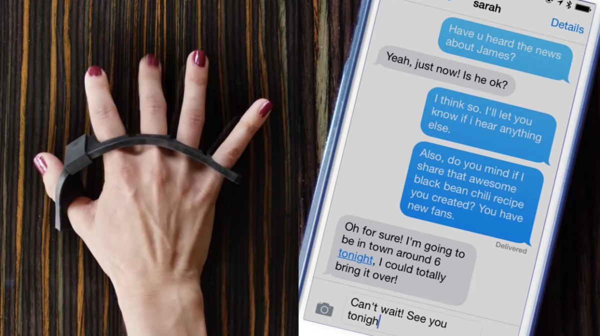 TAP ist nichts anderes als ein Band aus Schaumstoff, das wir uns ähnlich einem Handschuh über die Finger streifen. Aber diese Band kann viel mehr, als wir für möglich halten. Es kann 31 Bewegungen unserer Finger in Buchstaben und Zahlen umwandeln, die dann via Bluetooth an mobile Geräte übertragen werden. Und das mit einer Genauigkeit von 99 Prozent, so Ran Poliakine, der Erfinder.