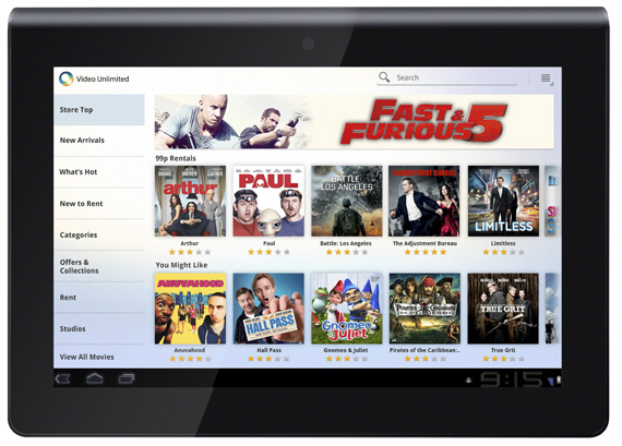 Nicht nur Musik, sondern auch Blockbuster-Videos und beliebte Filmklassiker können ab sofort per Knopfdruck über die bereits vorinstallierte Video Unlimited App auf die Sony Tablets heruntergeladen werden. Dabei stehen Filme der größten und weltweit bekanntesten Studios zur Verfügung. Diese können Nutzer ab 1,49 Euro ausleihen beziehungsweise ab 7,99 Euro kaufen.