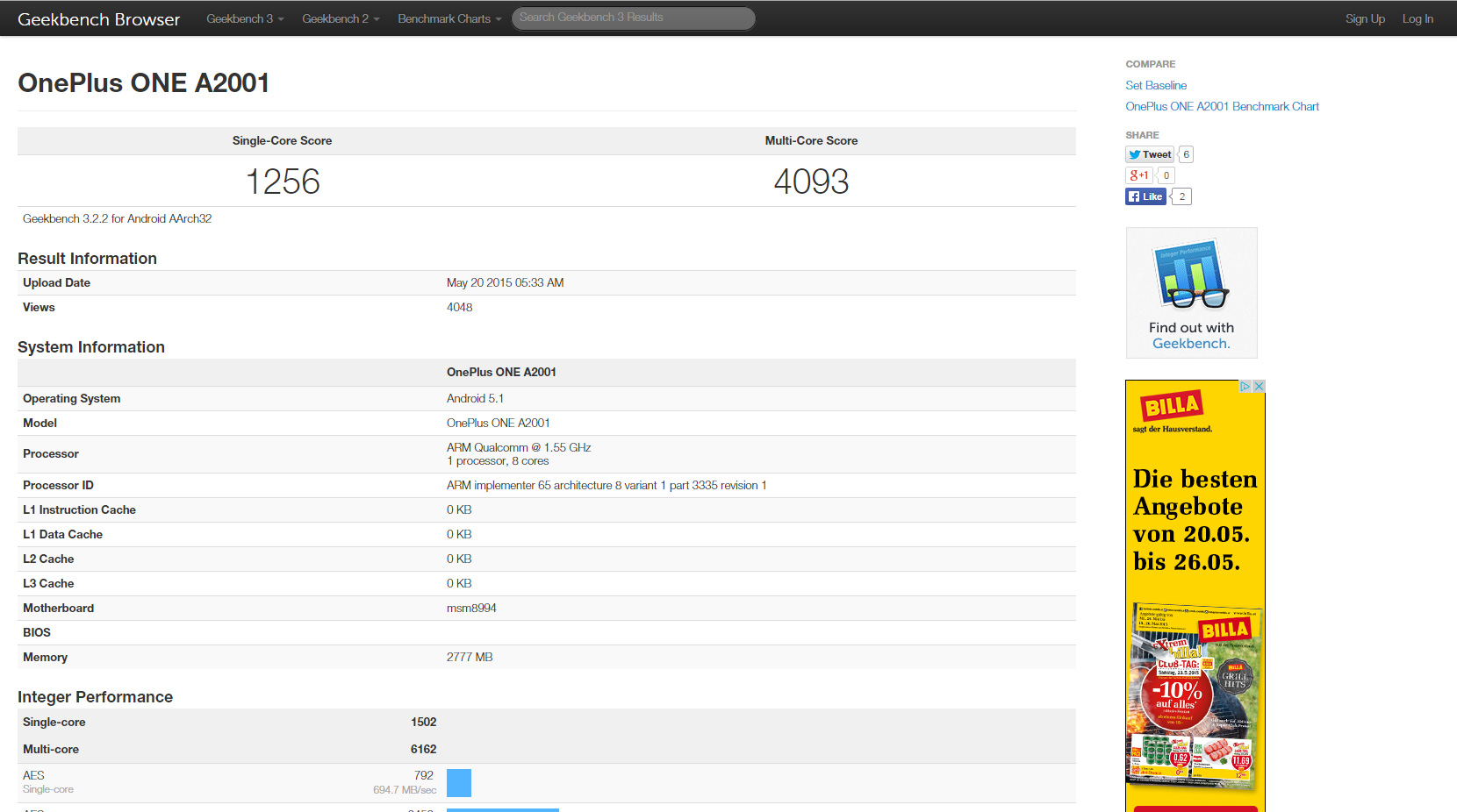 Auch beim Nachfolger will man den großen Konkurrenten ordentlich einheizen, weshalb im Inneren des OnePlus Two ein Octa Core-Prozessor sein Werk verrichten wird. Wir vermuten, dass hier ein Snapdragon 810 zum Einsatz kommt und sich folglich mit dem HTC One M9 in Sachen Performance ein Gefecht liefern wird. Diese Vermutungen unterstreicht jetzt ein aufgetauchtes Testergebnis von GeekBench. Dort ist als Modellnummer A2001 zu sehen. Da das OnePlus One die Nummer A0001 hatte, ist es durchaus glaubhaft, dass das der Nachfolger ist.