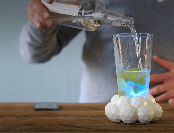 Dank Ozz ist diese Art der Vorbereitung nicht mehr notwendig, denn auf das Gadget wird ein Glas gestellt, in welches du nach und nach die unterschiedlichen Zutaten reinkippst. Direkt auf der Fläche, auf die das Glas gestellt wird, sind LEDs verbaut, die dir anzeigen, wie viel du noch von der einen Zutat reinkippen musst. Sobald es genug ist, wird ein geschlossener Kreis angezeigt und du kannst die nächste Flüssigkeit reinkippen.