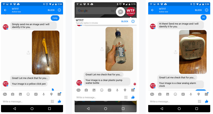 Der Bot nennt sich WTF IS THAT, was für „Was zum Teufel ist das“ steht und gibt exakt auf solche Fragen Antworten. Er analysiert also Bilder und erkennt die abgebildeten Objekte. Das funktioniert noch nicht ganz perfekt, aber schon ganz leidlich.